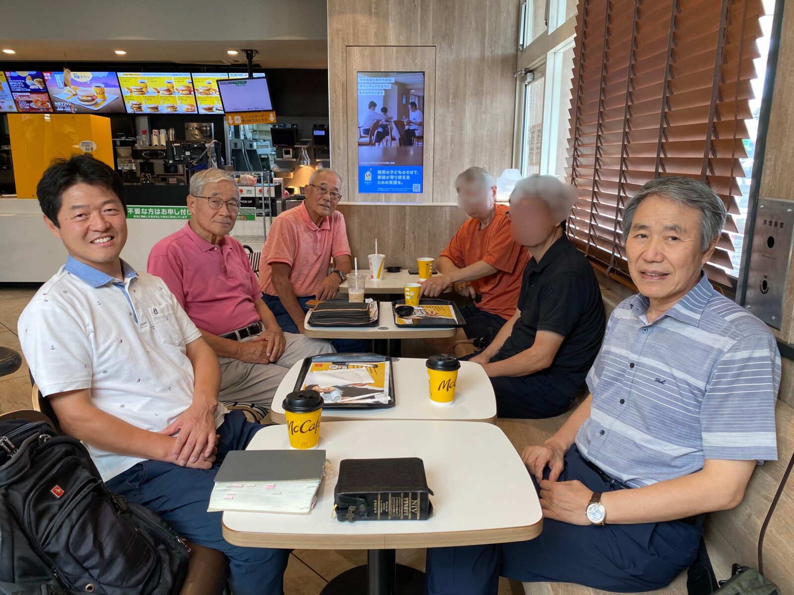 私たちの教会では、壮年の方を中心に毎週月曜日午前9時に、マクドナルドで集まり、コーヒーを飲みながら、自由に語り合う時間を持っています。
